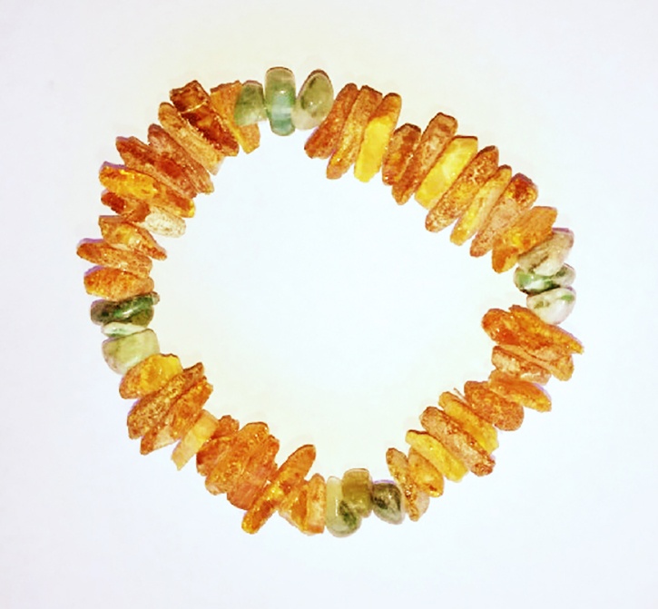 Braccialetto parure in ambra baltica naturale certificata con Giada, lunghezza 18 cm., elastico.