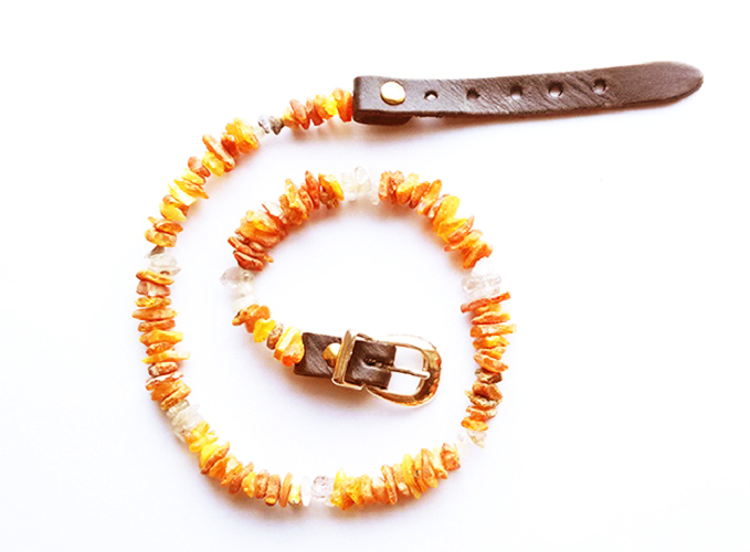 I collari in ambra baltica con pietre terapeutiche uniscono alle proprietà repellenti dell’ambra i benefici terapeutici dei cristalli.